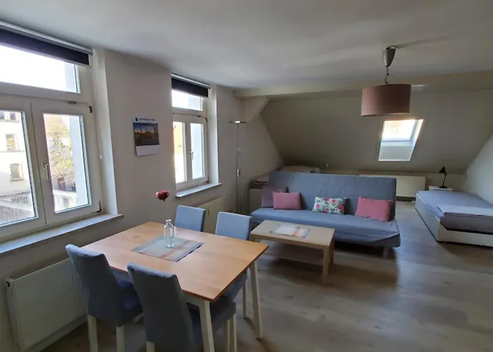 Den er placeret 800 meter fra Kulturhaus der Stadt Weissenfels og ca. 850 meter fra Chateau d'Augustusbourg. Der er Restaurant Jagerhof og Gaststätte "Schultheiss", der serverer tyske retter, som kan findes inden for 6 minutters gang fra indkvarteringen. Det tager en 10-minutters køretur for at se Rittergut Burgwerben.